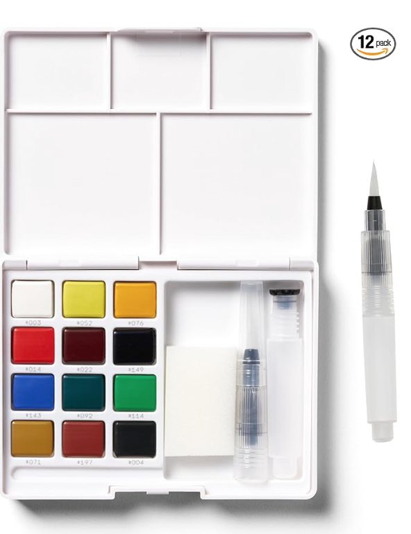 SAKURA Koi Pocket Field Sketch Kit – Watercolor Paint-On-the-Go Set, 12 Colors, 1 Water Brush, 1 Sponge, 1 Palette