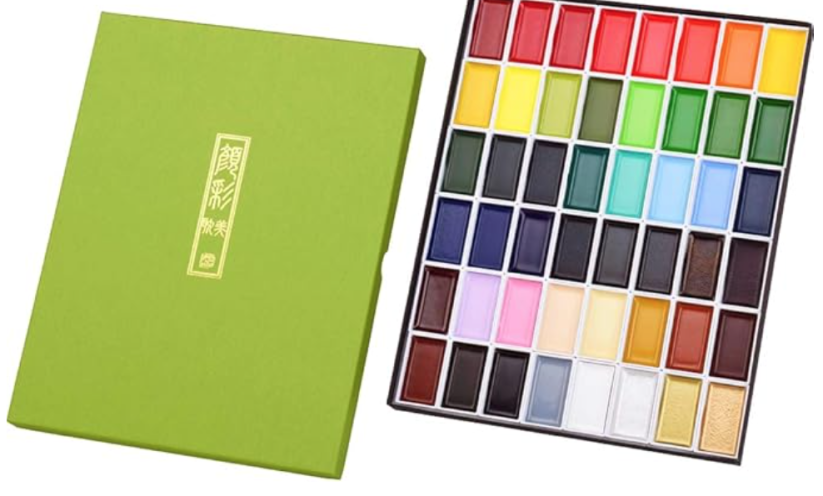 48-color watercolor paint set, professional quality art supplies for artists, adult painting, sketching, non-toxic, made in Japan